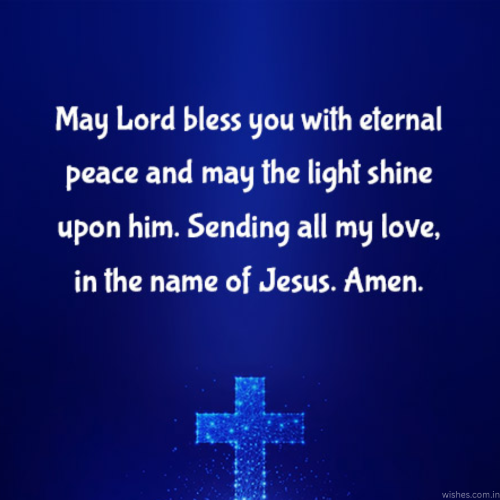 | 🕯️ May Lord bless you with eternal peace, and may the light shine upon him. Sending all my love, in the name of Jesus. Amen. 🙏 |