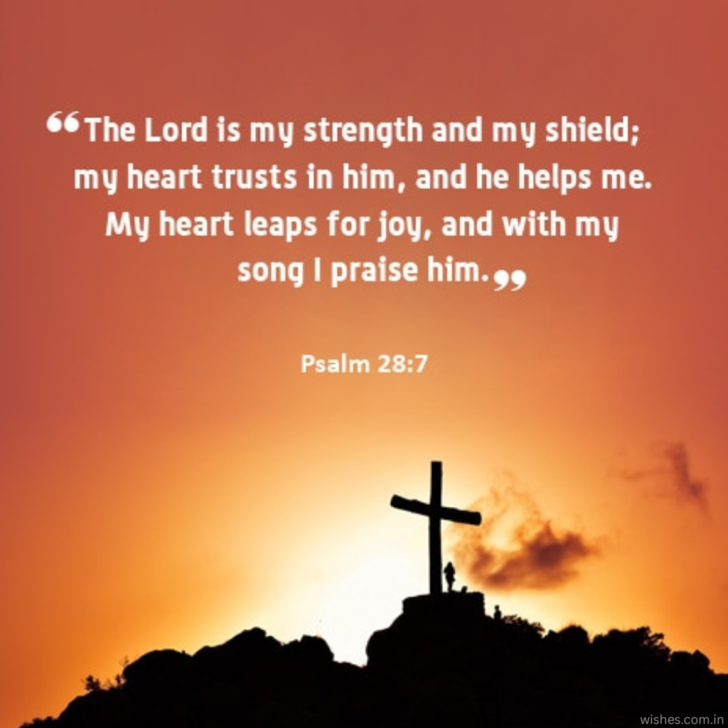 | ✨ “The Lord is my strength and my shield; my heart trusts in him, and he helps me. My heart leaps for joy, and with my song I praise him.” – Psalm 28:7 🙏 |