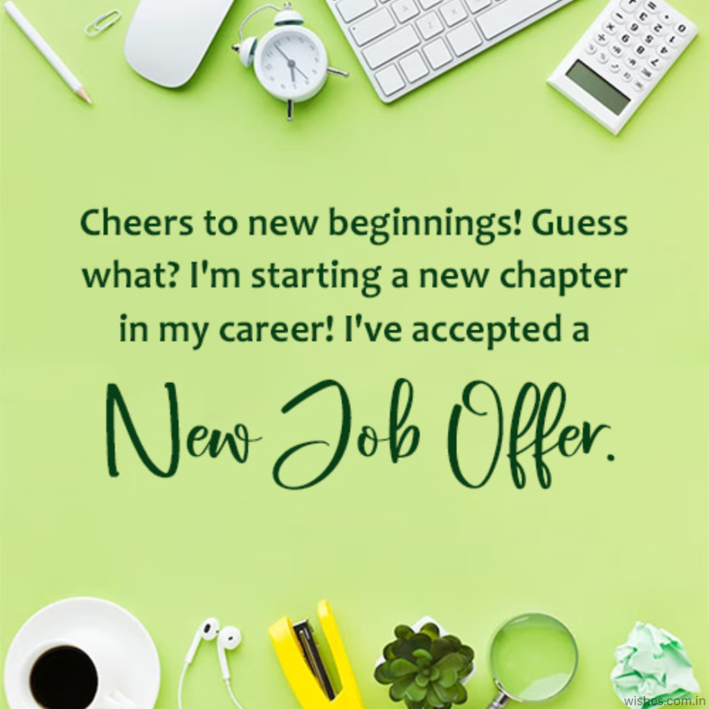 | 🥂 Cheers to new beginnings! Guess what? I’m starting a new chapter in my career! I’ve accepted a new job offer. 🥂 |