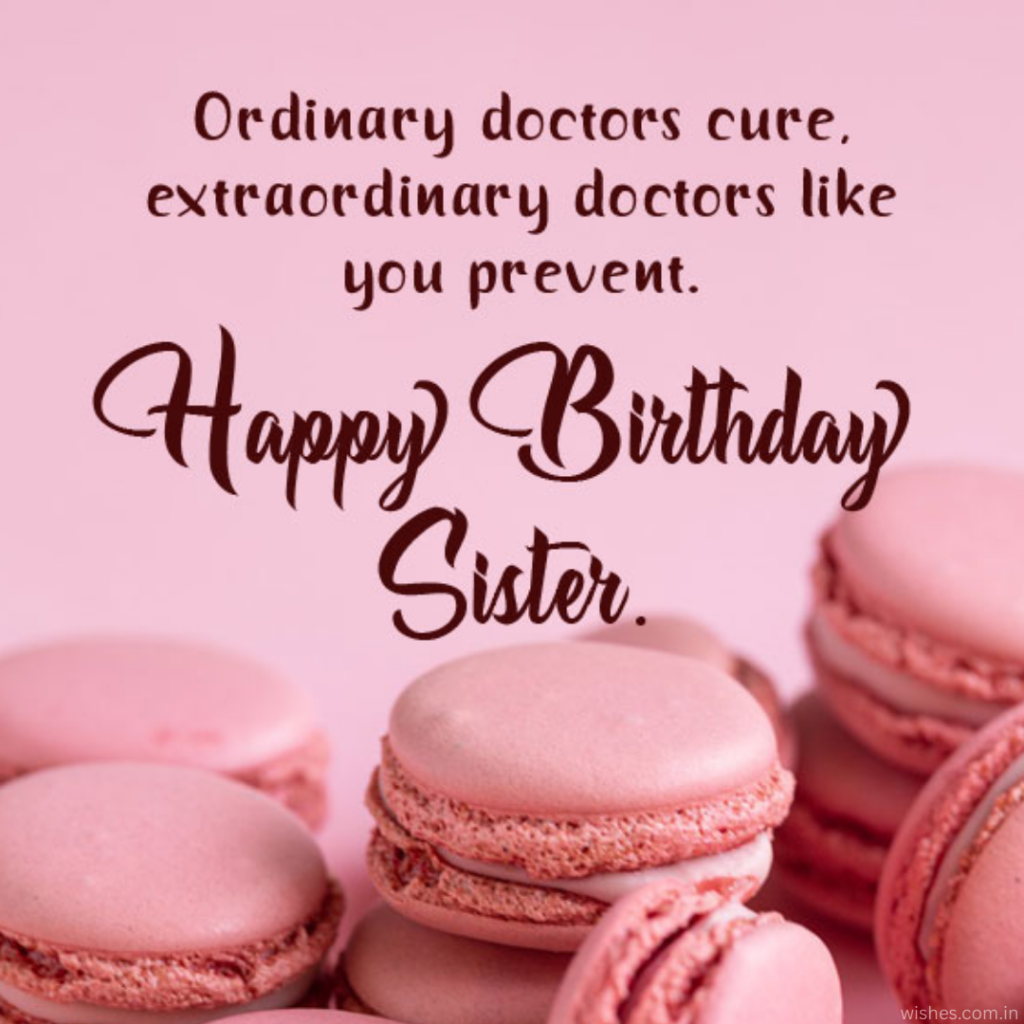 | 💖 Today on your birthday I just want to tell you how proud I am to have a dedicated doctor as a sister in my life. May God bless you in every way, dear. Happy Birthday. 🙏 |