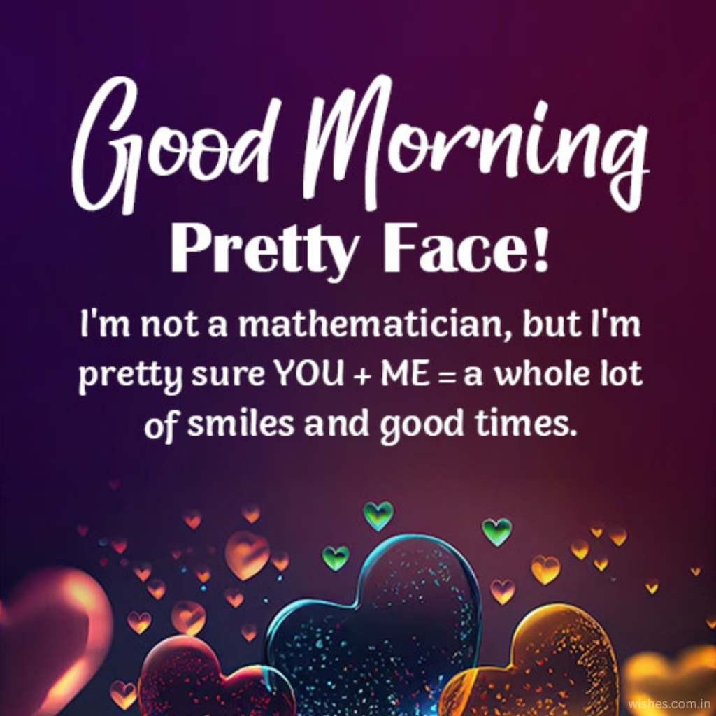 | 🌞 Good morning, Pretty Lady! I’m not a mathematician, but I’m pretty sure YOU + ME = a whole lot of smiles and good times. 😊 |