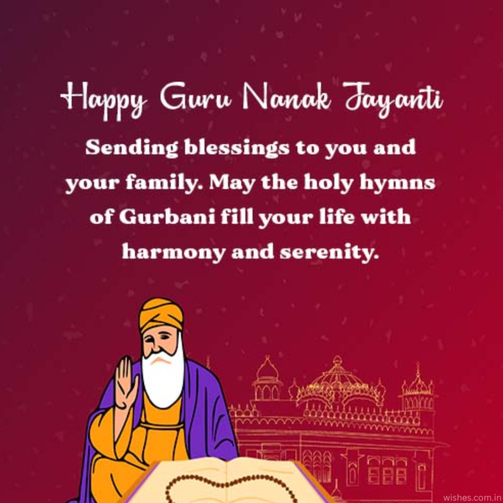 🌸 Happy Guru Nanak Jayanti to you and your family. May the holy hymns of Gurbani fill your life with harmony and serenity. 🙏 |