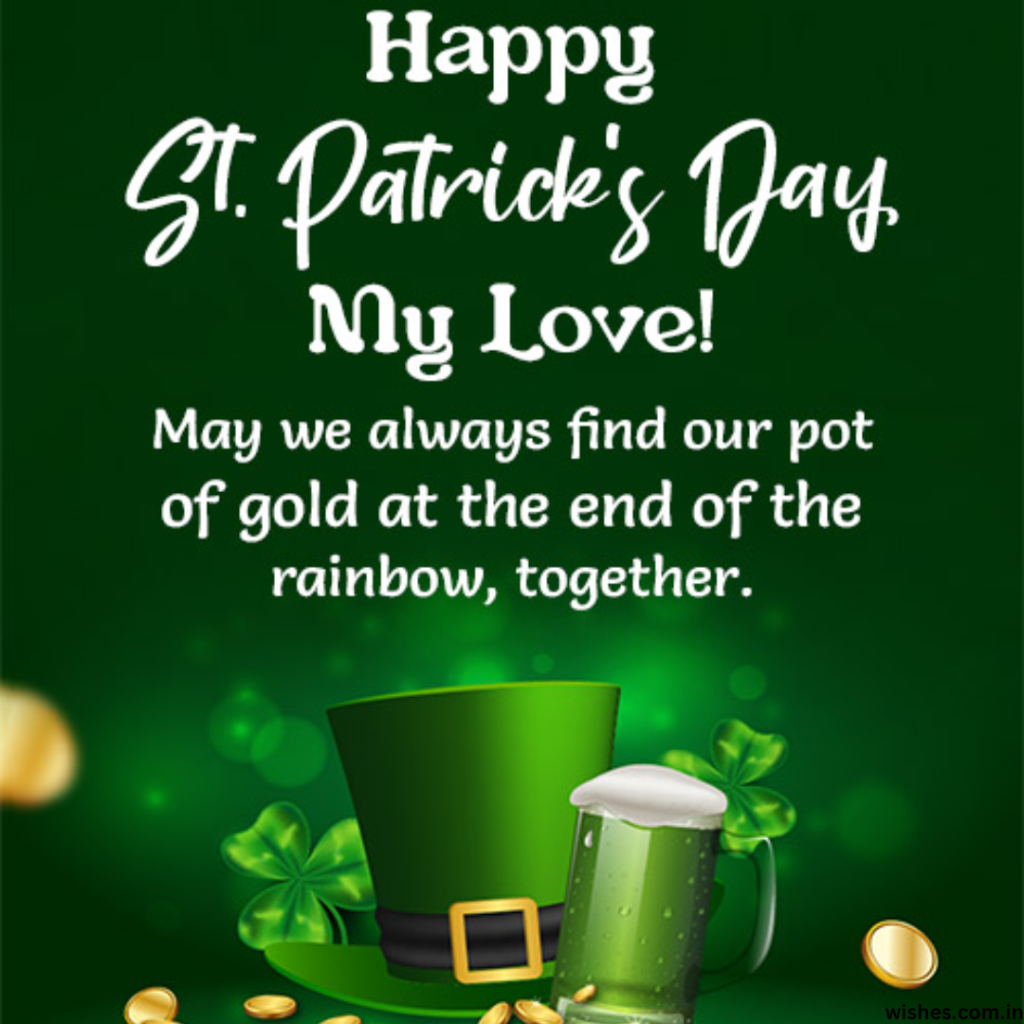 🍀 On this St. Patrick’s Day, I am wishing you lots of happiness, luck, and success. Happy St. Patrick’s day, dear. 🍀