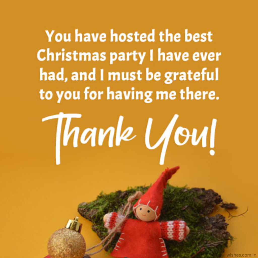 🎄 Dear (Name), thank you for hosting such an amazing Christmas party! I had a great time celebrating with you and everyone else. 🎉 |