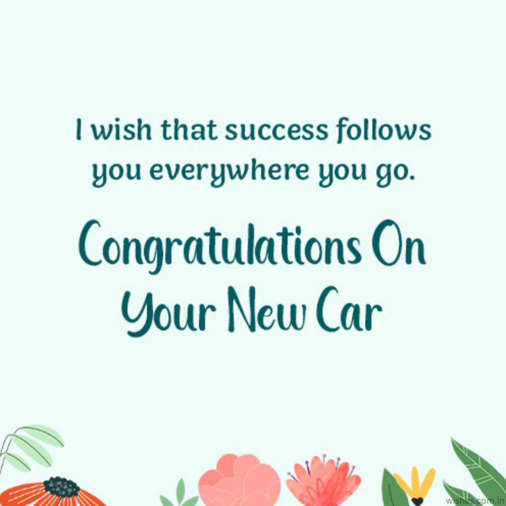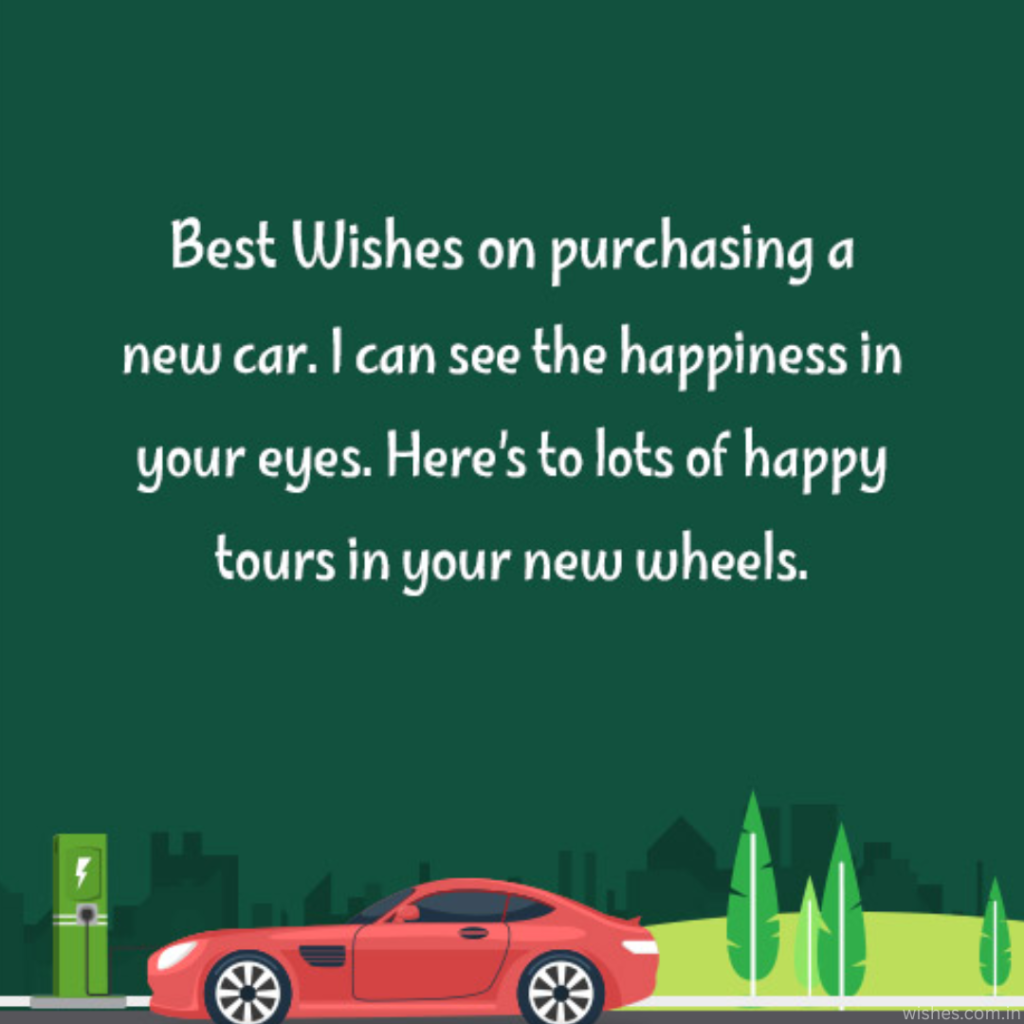 | 🚗 Congratulations on your new car. Wishing you miles of smiles. Enjoy every ride. 🎉 |