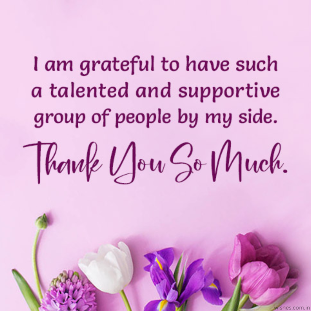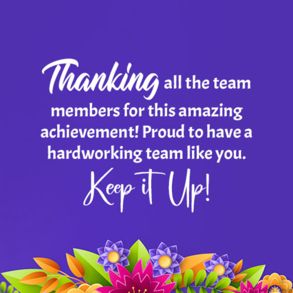 Congratulate their team members for achieving goals, completing projects, helping leaders, and working well together. Saying “thank you” helps team members feel valued and encourages them to keep up the good work. A simple thank you message can make a strong connection and create a positive work environment.