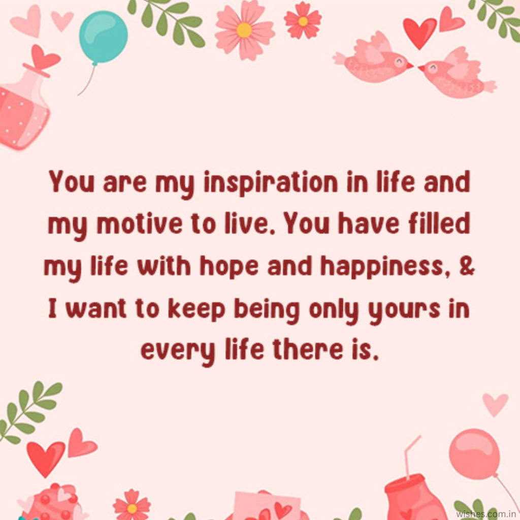| 🌟 You are my inspiration in life and my motive to live. You have filled my life with hope and happiness, and I want to keep being only yours in every life there is. 💖 |