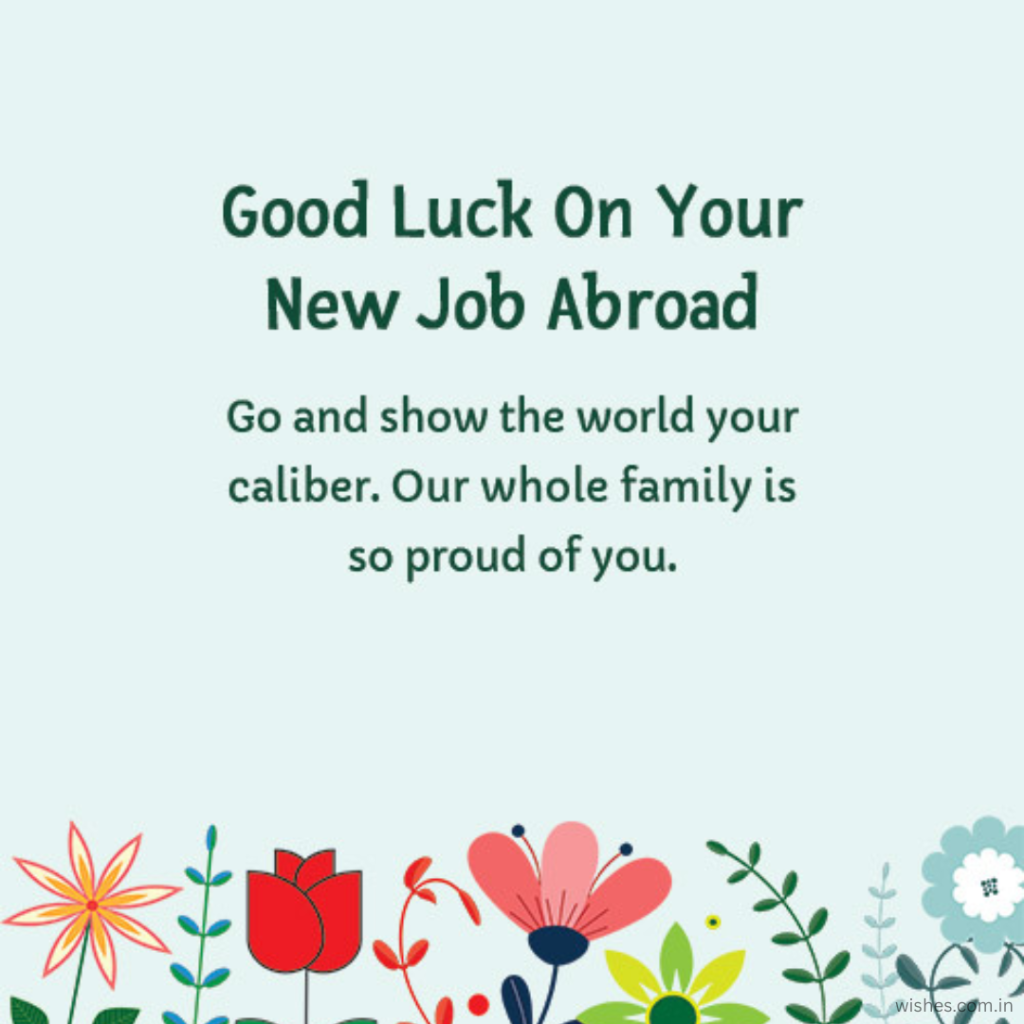 Hi everyone! How are you all doing? Welcome to wishes.com.in! Having the chance to work abroad is a great opportunity in anyone’s professional career. Those fortunate enough to secure an overseas job deserve warm and heartfelt best wishes for their success.